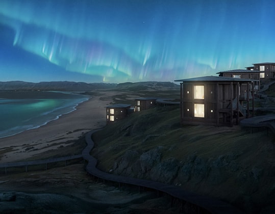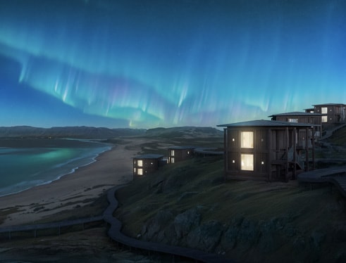 Суол — это новый уникальный курорт с гостиницей, апартаментами и спа, предлагающий гостям возможность полного уединения на живописном берегу моря с арктическими пейзажами и северным сиянием