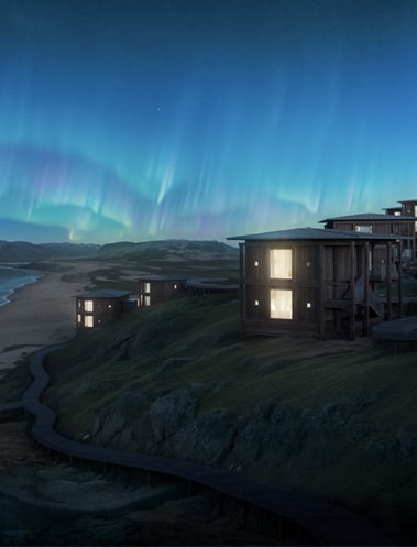 Суол — это новый уникальный курорт с гостиницей, апартаментами и спа, предлагающий гостям возможность полного уединения на живописном берегу моря с арктическими пейзажами и северным сиянием